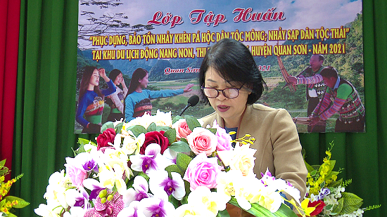 Sáng 25/6, Trung tâm Văn hóa tỉnh Thanh Hóa phối hợp với UBND huyện tổ chức Khai mạc Lớp tập huấn “Phục dựng, bảo tồn nhảy Khèn Pá Hộc dân tộc Mông; Nhảy sạp dân tộc Thái”. Tham dự có các đồng chí: Nguyễn Thị Hoàng Yến, Trưởng phòng Nghiệp vụ Văn hoá, Sở Văn hoá, Thể thao và Du lịch Thanh Hóa; Nguyễn Thị Mai Hương, Giám đốc Trung tâm Văn hóa tỉnh; Chu Đình Trọng, Phó Chủ tịch UBND huyện Quan Sơn; Lê Thế Anh, Chánh Văn phòng UBND huyện; Lê Văn Thơ Phó Trưởng phòng phụ trách VH-TT huyện; Bùi Xuân Hòa, Giám đốc Trung tâm VH-TT-TT&DL cùng cán bộ, nghệ nhân, giáo viên, học viên thị trấn Sơn Lư, huyện Quan Sơn.