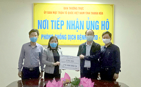 Hưởng ứng Lời kêu gọi của Đoàn Chủ tịch Ủy ban Trung ương MTTQ Việt Nam, chiều ngày 3/4, tại trụ sở Ủy ban MTTQ tỉnh, Sở VH,TT&DL Thanh Hóa do đồng chí Đỗ Quang Trọng - Phó Giám đốc Sở làm trưởng đoàn đã đến trao 170 triệu đồng ủng hộ phòng chống đại dịch Covid-19. Đồng chí Phạm Thị Thanh Thủy - Ủy viên Ban Thường vụ, Trưởng ban Dân vận Tỉnh ủy, Chủ tịch Ủy ban MTTQ tỉnh dự buổi lễ tiếp nhận.