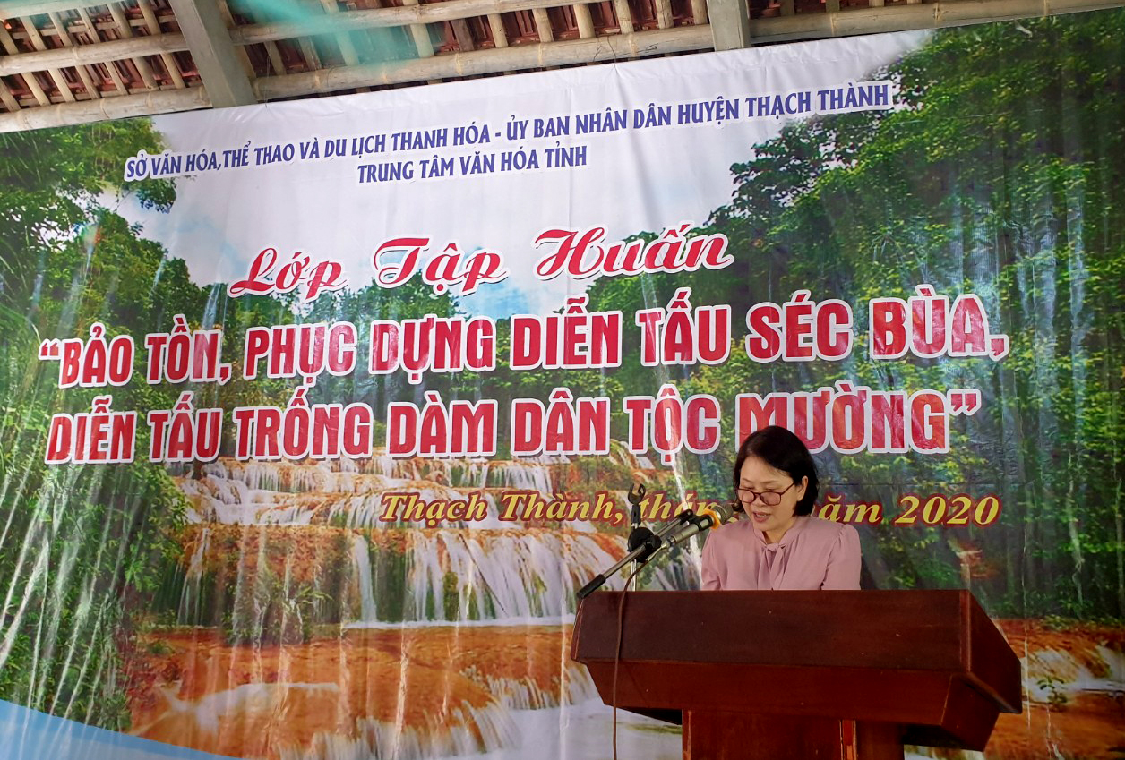 Thực hiện đề án “Nghiên cứu, phục dựng, phát huy giá trị các lễ hội tiêu biểu và các loại hình văn hóa dân gian đặc sắc trên địa bàn tỉnh Thanh Hóa phục vụ phát triển du lịch”. Sáng ngày 10/6/2020 tại Thác Mây, xã Thạch Lâm, huyện Thạch Thành Trung tâm Văn hóa tỉnh mở Lớp tập huấn “Bảo tồn, phục dựng diễn tấu Séc Bùa, diễn tấu Trống Dàm dân tộc Mường”