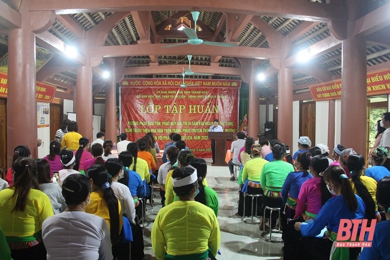(Baothanhhoa.vn) - Sáng 23-3, tại nhà văn hóa thôn Đăng Thượng, xã Thạch Lâm (huyện Thạch Thành), Sở Văn hóa, Thể thao và Du lịch đã phối hợp với UBND huyện Thạch Thành đã khai mạc lớp tập huấn về phương pháp bảo tồn phát huy giá trị di sản văn hóa phi vật thể nghề thủ công, nghệ thuật thêu hoa văn trên trang phục truyền thống của người dân tộc Mường, huyện Thạch Thành gắn với phát triển du lịch.