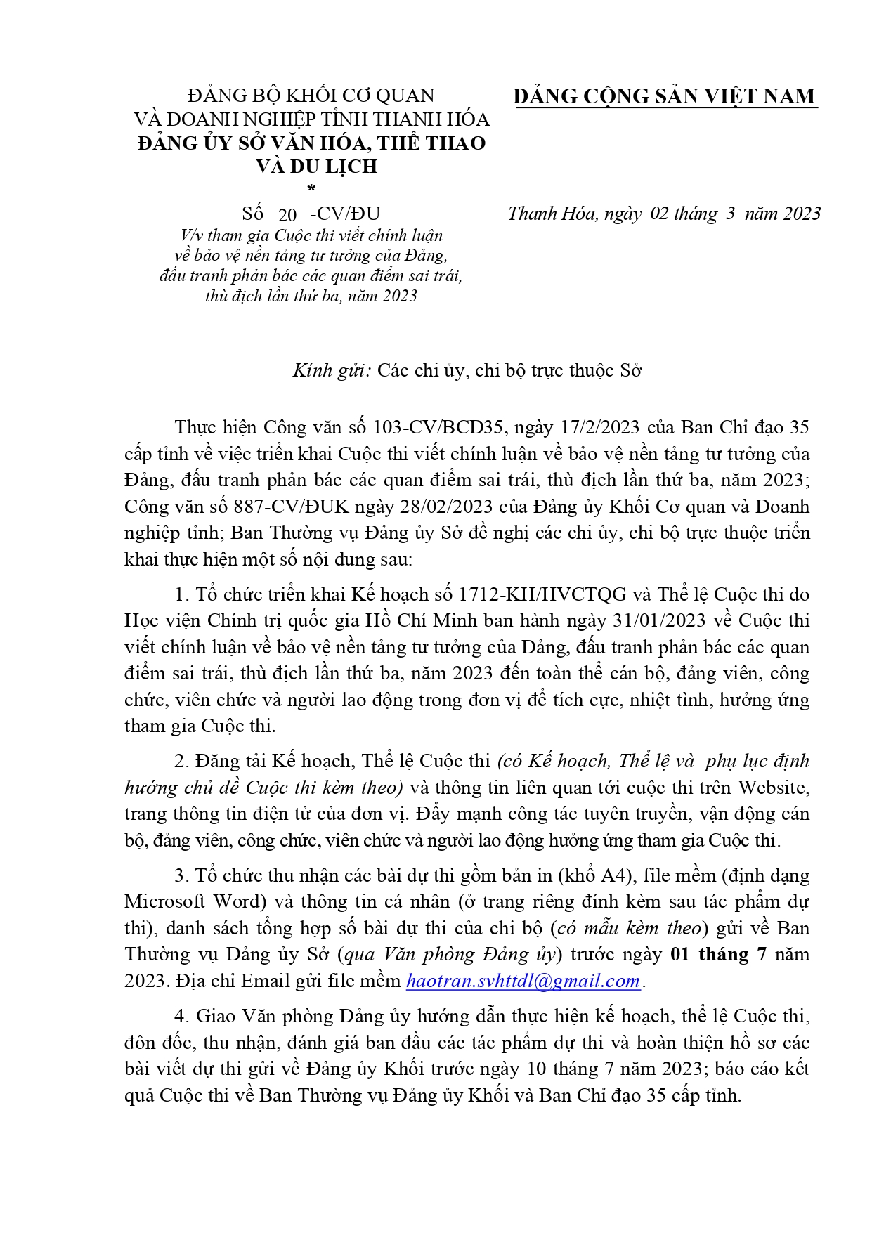 Cuộc thi viết chính luận về bảo vệ nền tảng tư tưởng của Đảng, đấu tranh phản bác các quan điểm sai trái, thù địch lần thứ ba, năm 2023