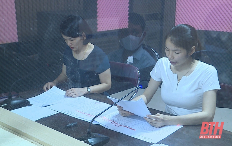 Các bài tuyên truyền về bầu cử được các phát thanh viên truyền tải qua hệ thống truyền thanh.