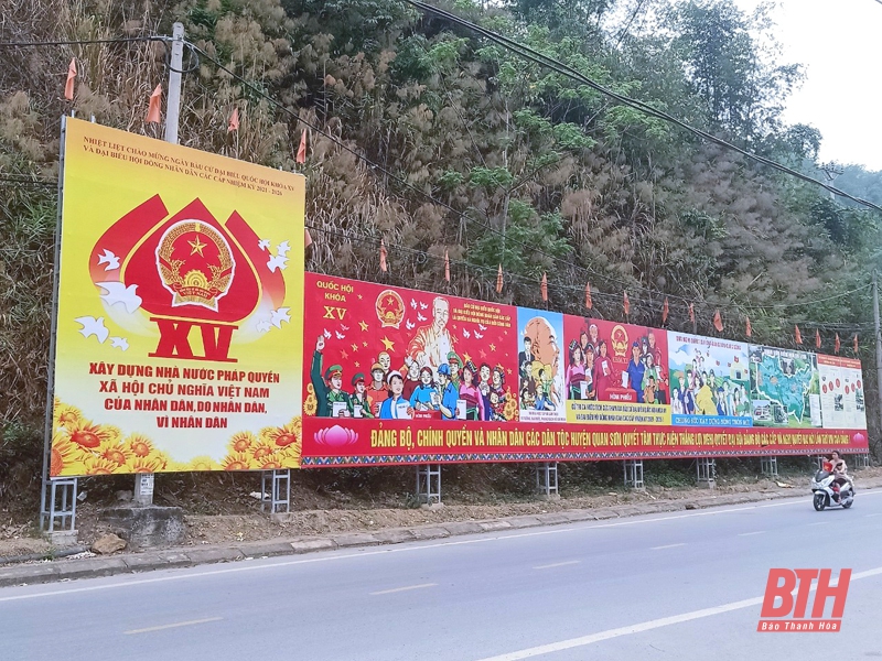 Pano cổ động bầu cử trên Quốc lộ 217 thuộc huyện Quan Sơn.