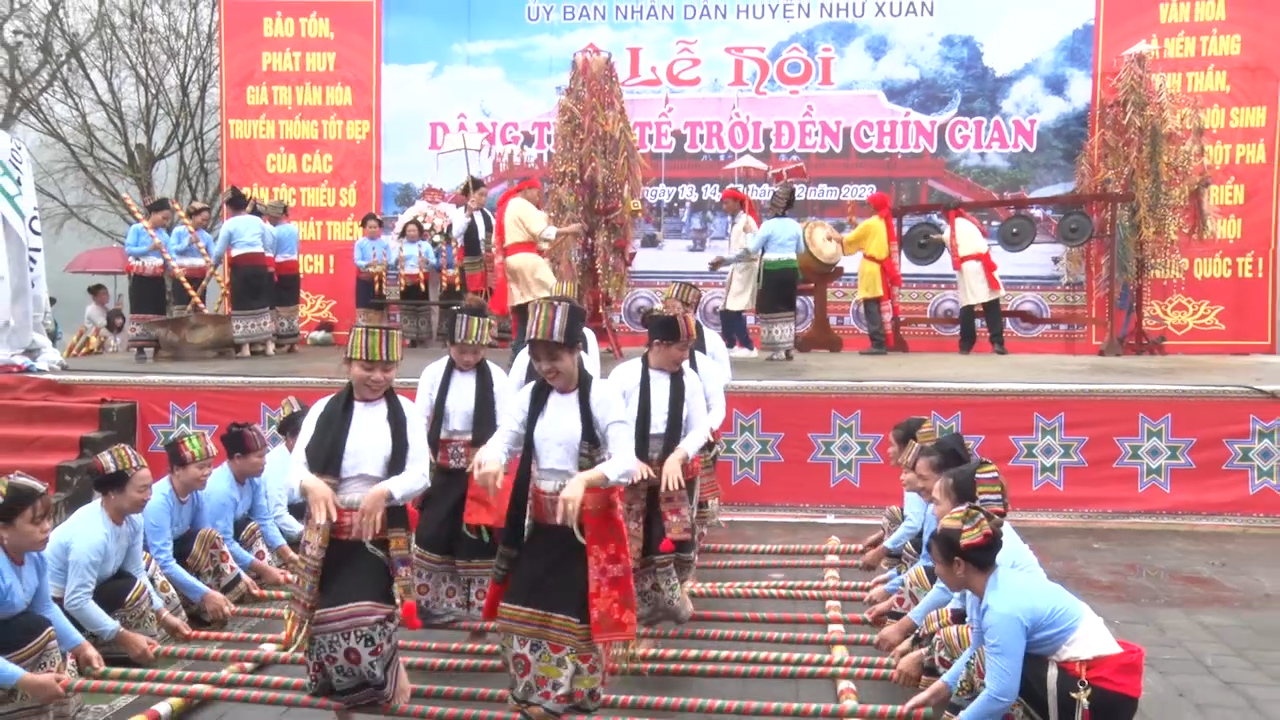 Đền Chín Gian là Di tích lịch sử văn hóa cấp tỉnh mang đậm bản sắc của đồng bào Dân tộc miền núi huyện Như Xuân. Lễ hội Dâng trâu Tế trời là Lễ hội có nguồn gốc từ xa xưa của đồng bào Dân tộc Thái vùng 6 Thanh huyện Như Xuân. Đền Chín Gian nằm trên đỉnh núi Pú Pỏm, Lễ hội là dịp để đồng bào các dân tộc huyện Như Xuân nhớ về cội nguồn, tưởng nhớ công ơn các thế hệ cha ông đã có công tạo Bản, lập Mường, cầu cho Quốc thái dân an, mưa thuận gió hòa, mang đậm bản sắc của đồng bào Dân tộc miền núi huyện Như Xuân. Đây là thiết chế văn hóa tâm linh tín ngưỡng linh thiêng của đồng bào người Thái nói riêng và đồng bào các Dân tộc huyện Như Xuân nói chung.