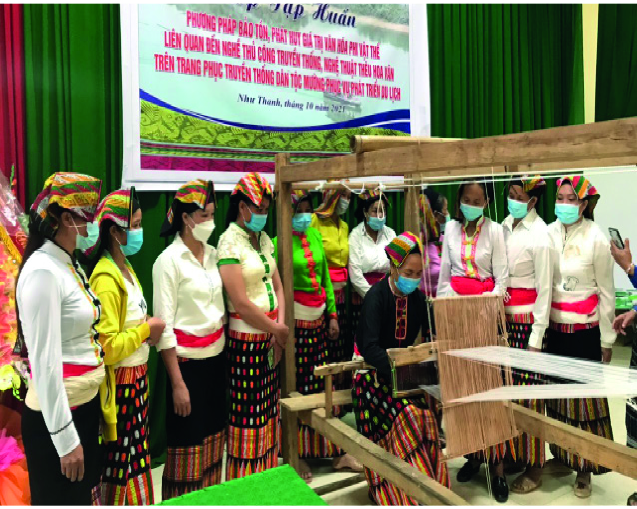 Thông qua các Lớp tập huấn, dưới sự hướng dẫn, giảng dạy của Tiến sỹ Hoàng Bá Tường - Nhà nghiên cứu văn hóa, Phó Trưởng ban Thường trực Ban Tuyên giáo tỉnh ủy; Phó Giáo sư, Tiến sỹ Mai Văn Tùng - Trưởng khoa Khoa học xã hội, trường Đại học Hồng Đức và các nghệ nhân dân gian đã truyền đạt các kiến thức cơ bản về nguồn gốc, giá trị, nghệ thuật tạo hình hoa văn trên trang phục Mường, Thái truyền thống; cách thức bảo tồn, lưu giữ và phát huy nghề dệt, cách thức làm ra sản phẩm và tiêu thụ ra thị trường bằng thổ cẩm gắn với phát triển du lịch cộng đồng; tham quan thực tế tại các mô hình thêu, dệt thổ cẩm.