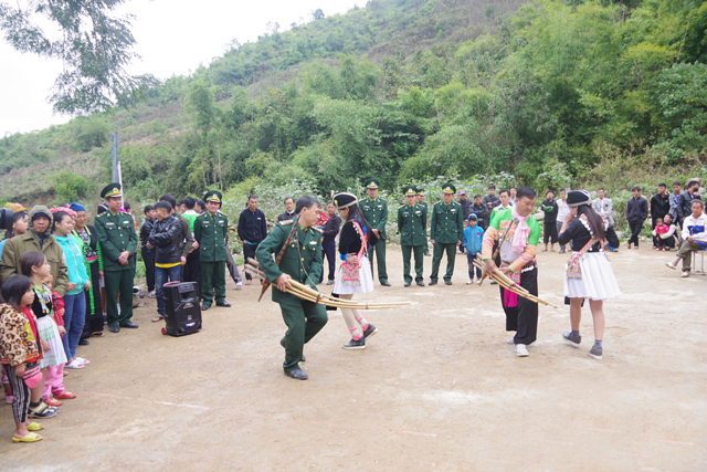 Cán bộ, chiến sỹ Đồn Biên phòng Pù Nhi, huyện Mường Lát tổ chức hoạt động vui xuân với Nhân dân bản Cơm.