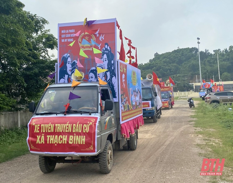 Xe lưu động của các xã thuộc huyện Thạch Thành ra quân tuyên truyền, cổ động tới địa bàn dân cư.