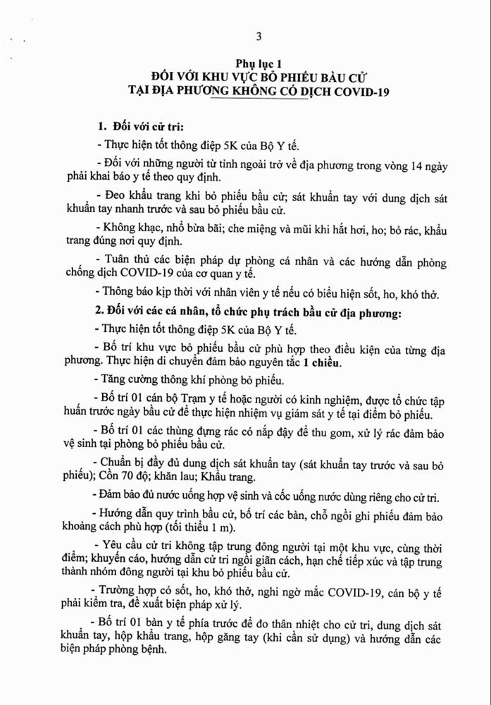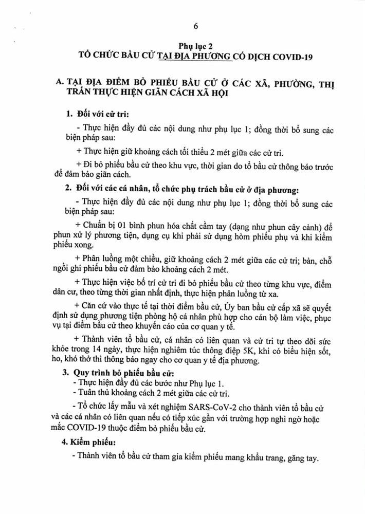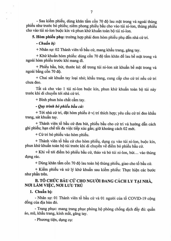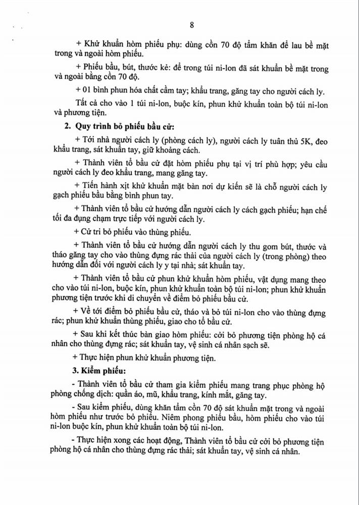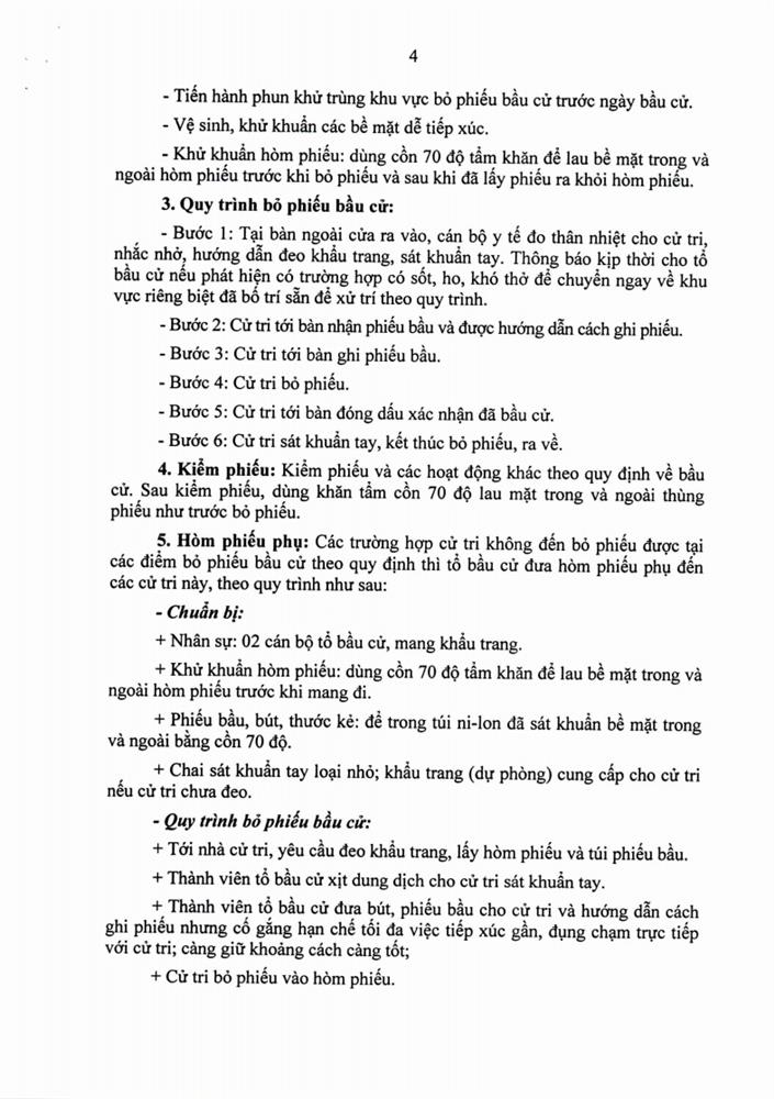 Giao Sở Nội vụ, Sở Y tế theo chức năng nhiệm vụ được giao hướng dẫn chuyên môn, nghiệp vụ, quy trình tổ chức thực hiện các công việc trong cuộc bâu cử, đảm bảo yêu cầu phòng chống dịch theo yêu cầu.