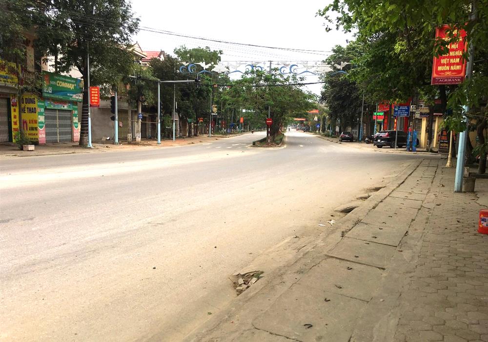 Nhiều tuyến đường trên địa bàn huyện đã vắng bóng người trong những ngày đầu thực hiện