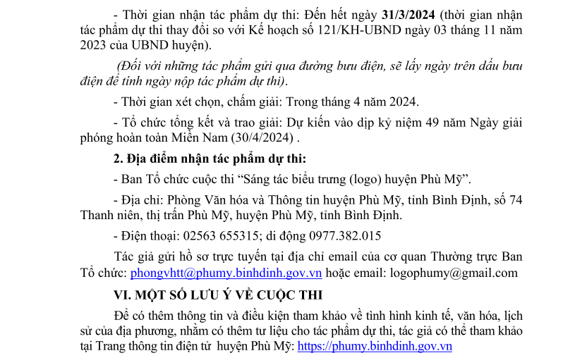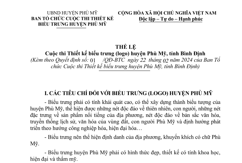 Thể lệ Cuộc thi thiết kế biểu trưng (Logo) huyện Phù Mỹ, tỉnh Bình Định