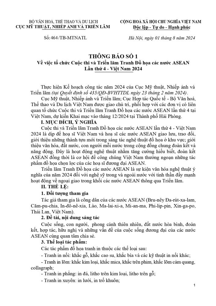 Tổ chức Cuộc thi và Triển lãm Tranh Đồ họa các nước lần thứ 4 - Việt Nam 2024
