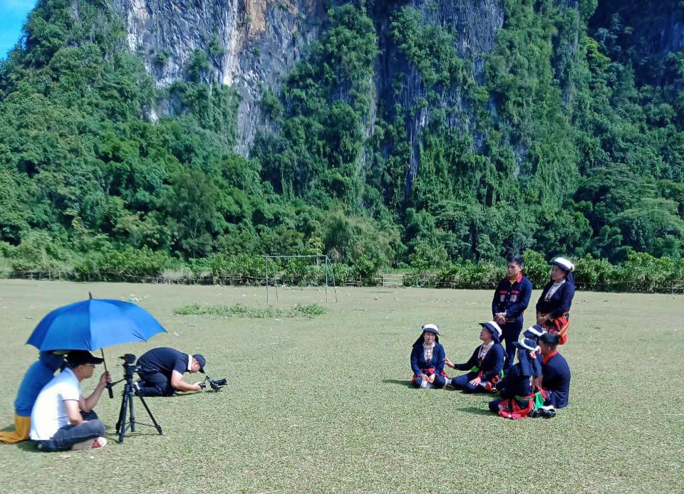 Cảnh ghi hình phục dựng hát Dân ca của đồng bào dân tộc Dao huyện Cẩm Thủy.