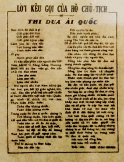 Lời kêu gọi thi đua ái quốc của Chủ tịch Hồ Chí Minh đã có sức lôi cuốn, động viên, hiệu triệu toàn Đảng, toàn dân và toàn quân ta phát huy truyền thống yêu nước, tinh thần đoàn kết, ý chí tự lực, tự cường, vượt qua mọi hy sinh, gian khổ, lập nên những chiến công hiển hách và thành tích to lớn trong sự nghiệp cách mạng nước ta. Thi đua đã thực sự trở thành một động lực cho toàn Đảng, toàn dân, toàn quân ta, đưa cách mạng Việt Nam đi từ thắng lợi này đến thắng lợi khác.